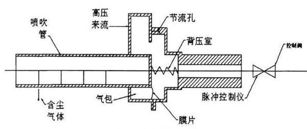 脈沖除塵器的噴吹系統(tǒng) 布袋除塵器的噴吹系統(tǒng)包括儀表、氣源、空氣管路、分氣包、電磁脈沖閥、噴吹管等。每排濾袋上有一根噴吹管,通過電磁脈沖閥與分氣包相連。